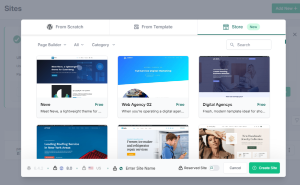 - Wybierz gotową witrynę z zakładki „Store”.
