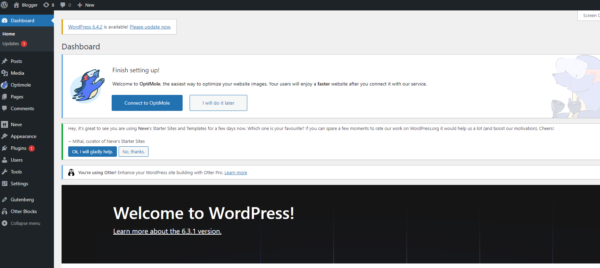 Po naciśnięciu przycisku „Continiue to Site” zostaniesz przekierowany do panelu administracyjnego WordPressa.