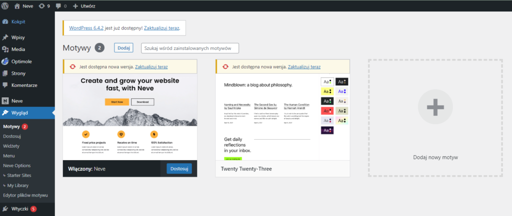 Aby wybrać szablon, klikamy w menu po lewej stronie na pozycję Wygląd, a następnie Motywy.