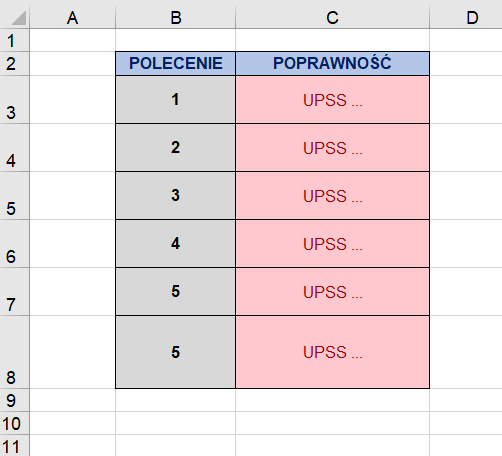 Zadania do samodzielnego rozwiązania i sprawdzenia swoich wiadomości i umiejętności . Poniżej znajduje się link z plikiem z zadaniami. Plik w arkuszu POPRAWNOŚĆ wyświetla czy zadanie zostało zrobione prawidłowo czy też nie.