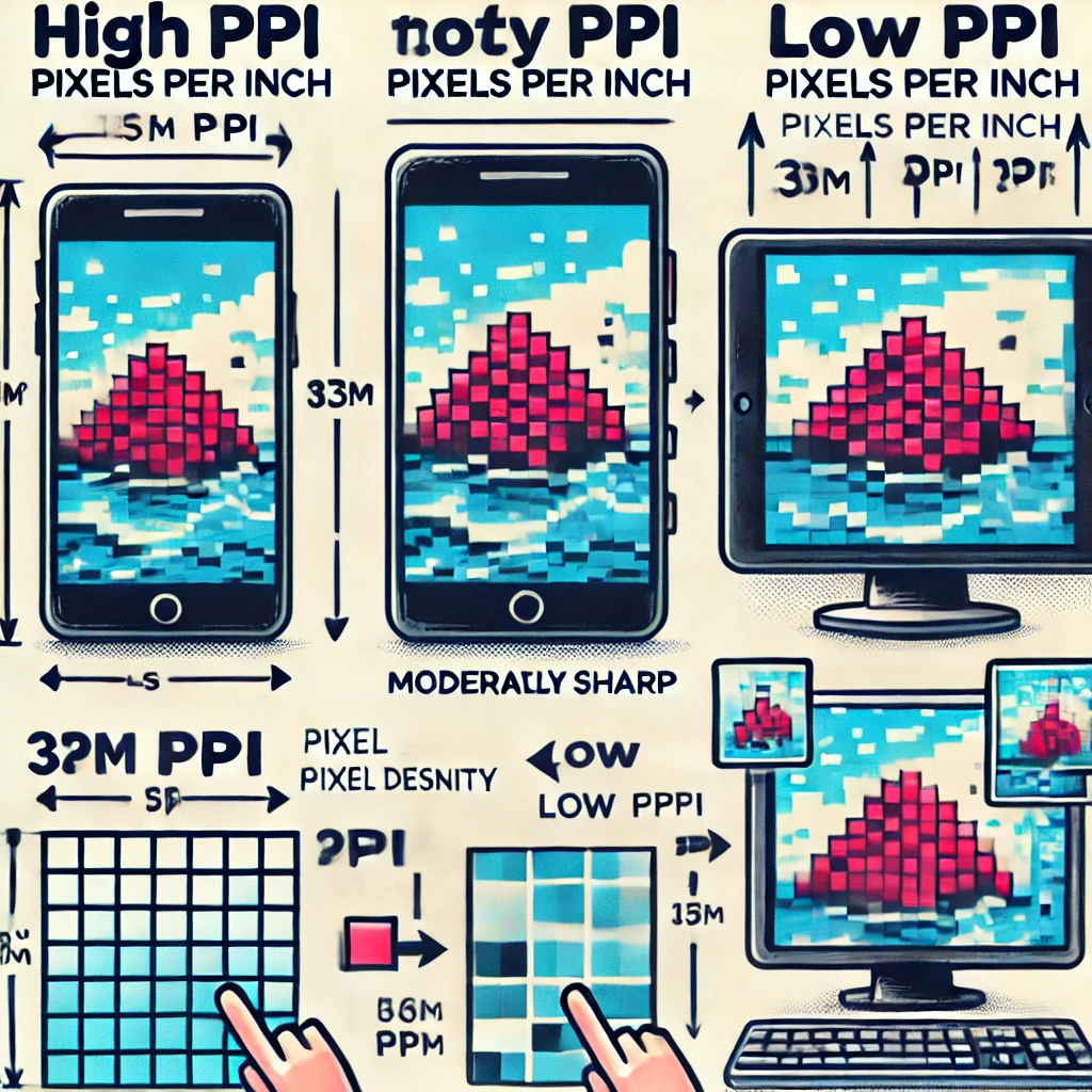 Im wyższe PPI, tym lepsza jakość wyświetlanego obrazu. Na przykład smartfony i tablety często mają ekrany o wysokim PPI (np. 300 PPI i wyżej), co sprawia, że obrazy i teksty są bardziej ostre. Z kolei obrazy o niskim PPI na dużych ekranach będą wydawać się mniej wyraźne, ponieważ piksele będą widoczne gołym okiem.
