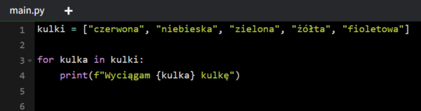 Teraz wyobraź sobie, że masz słoik z dokładnie 5 kulkami o różnych kolorach, i chcesz wyciągnąć je w określonej kolejności. Tutaj pętla for sprawdzi się idealnie: