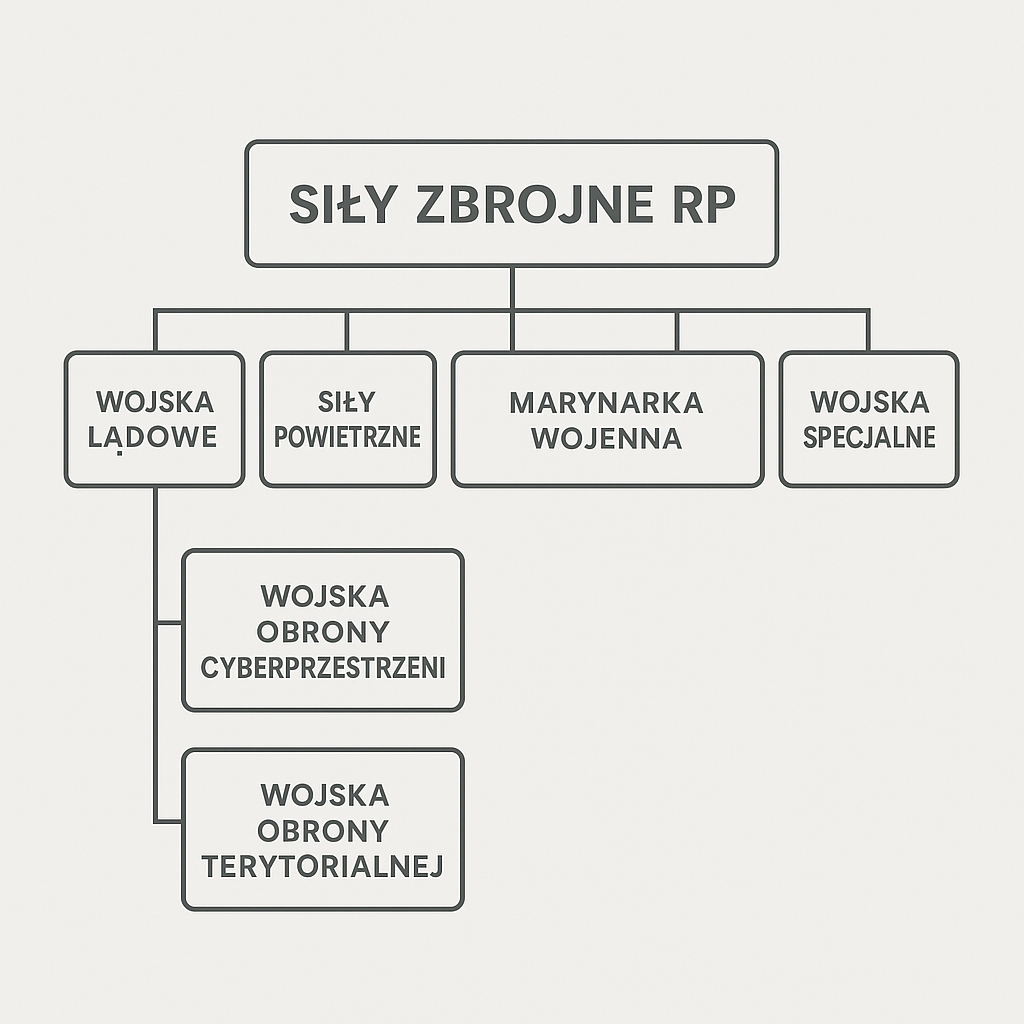 Rodzaje Sił Zbrojnych RP – to najwyższy poziom podziału (5 głównych kategorii).