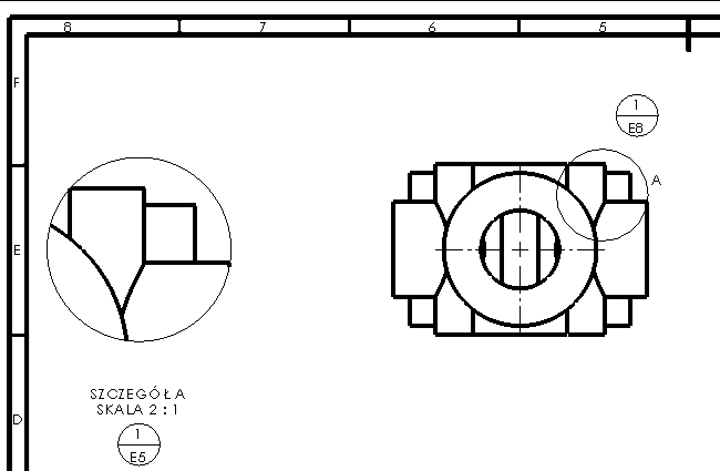 Na rysunku głównym zaznacza się fragment, który ma zostać przedstawiony w powiększeniu. Stosuje się do tego:
