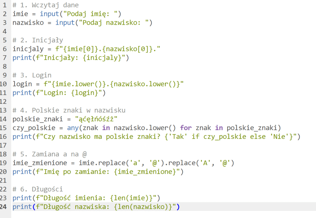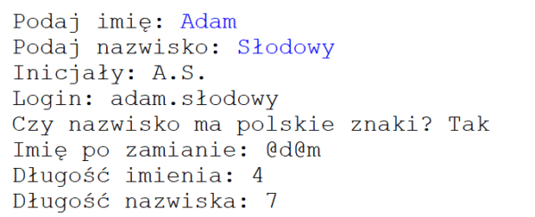 Jak zmodyfikować program, aby tworzył login z pierwszej litery imienia i całego nazwiska?
