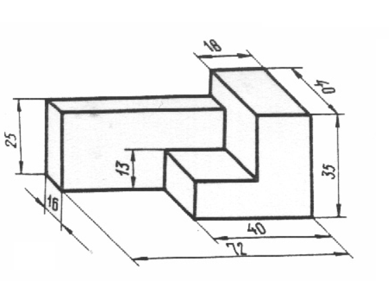 Na podstawie poniższego rzutu izometrycznego z wymiarami wykonaj model 3D oraz rysunek techniczny.
