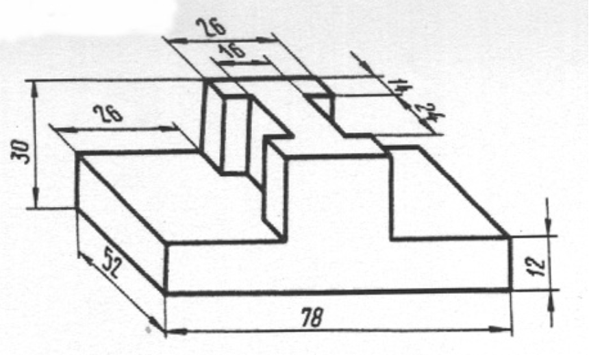 Na podstawie poniższego rzutu izometrycznego z wymiarami wykonaj model 3D oraz rysunek techniczny.