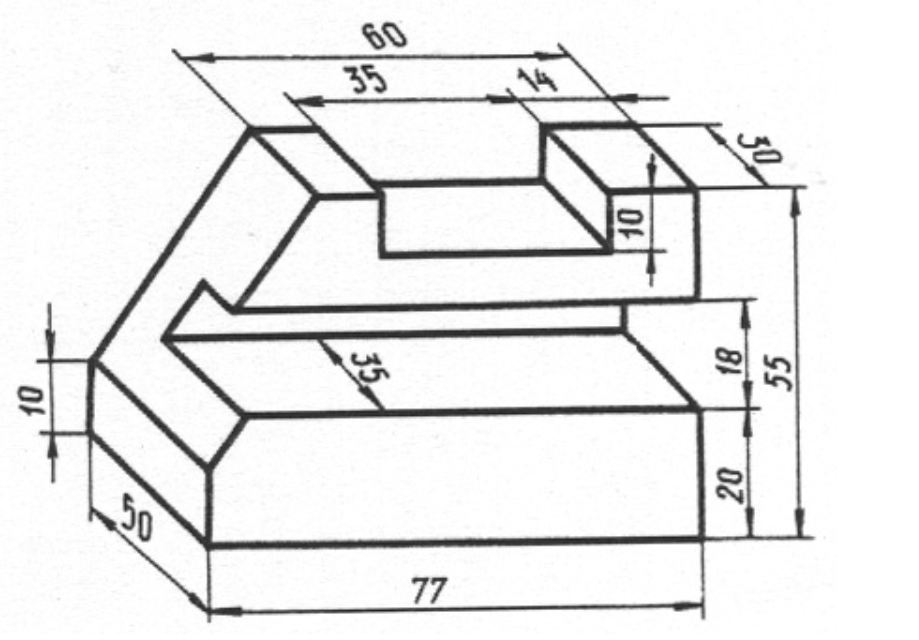 Na podstawie poniższego rzutu izometrycznego z wymiarami wykonaj model 3D oraz rysunek techniczny.