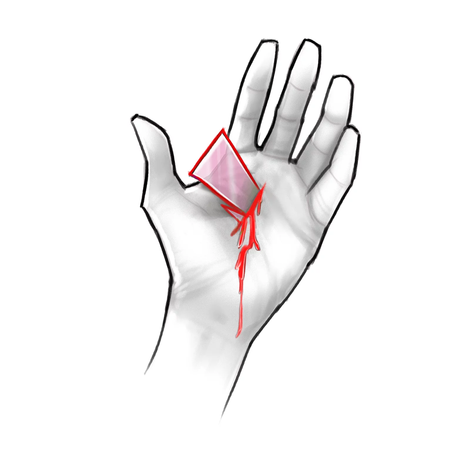❌ nie wyciągać na siłę przedmiotów z ran i oka