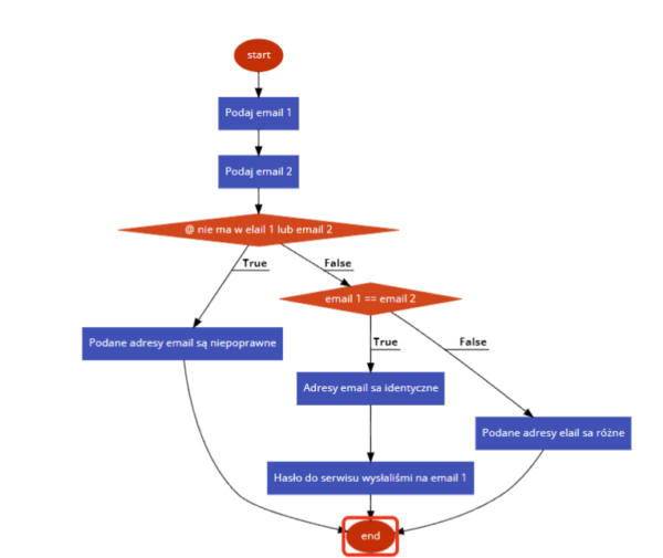 Przykładowy algorytm zapisany jako schemat blokowy: