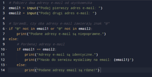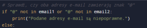 Uzupełnij program z Ćwiczenia nr 1 o kod sprawdzający poprawność adresu email poprzez wyszukanie znaku @.