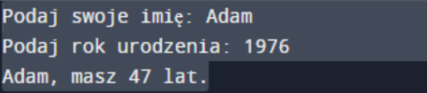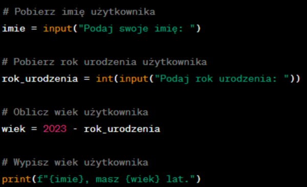 Stworzenie algorytmu, a następnie napisanie skryptu w języku Python, który obliczy wiek użytkownika.