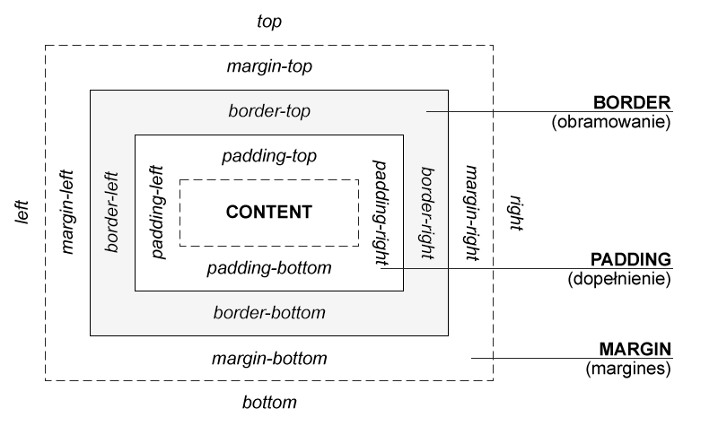 Model pudełkowy to schemat, według którego określane są wielkości części składowych elementu HTML (znaczników). Składa się on z czterech elementów: